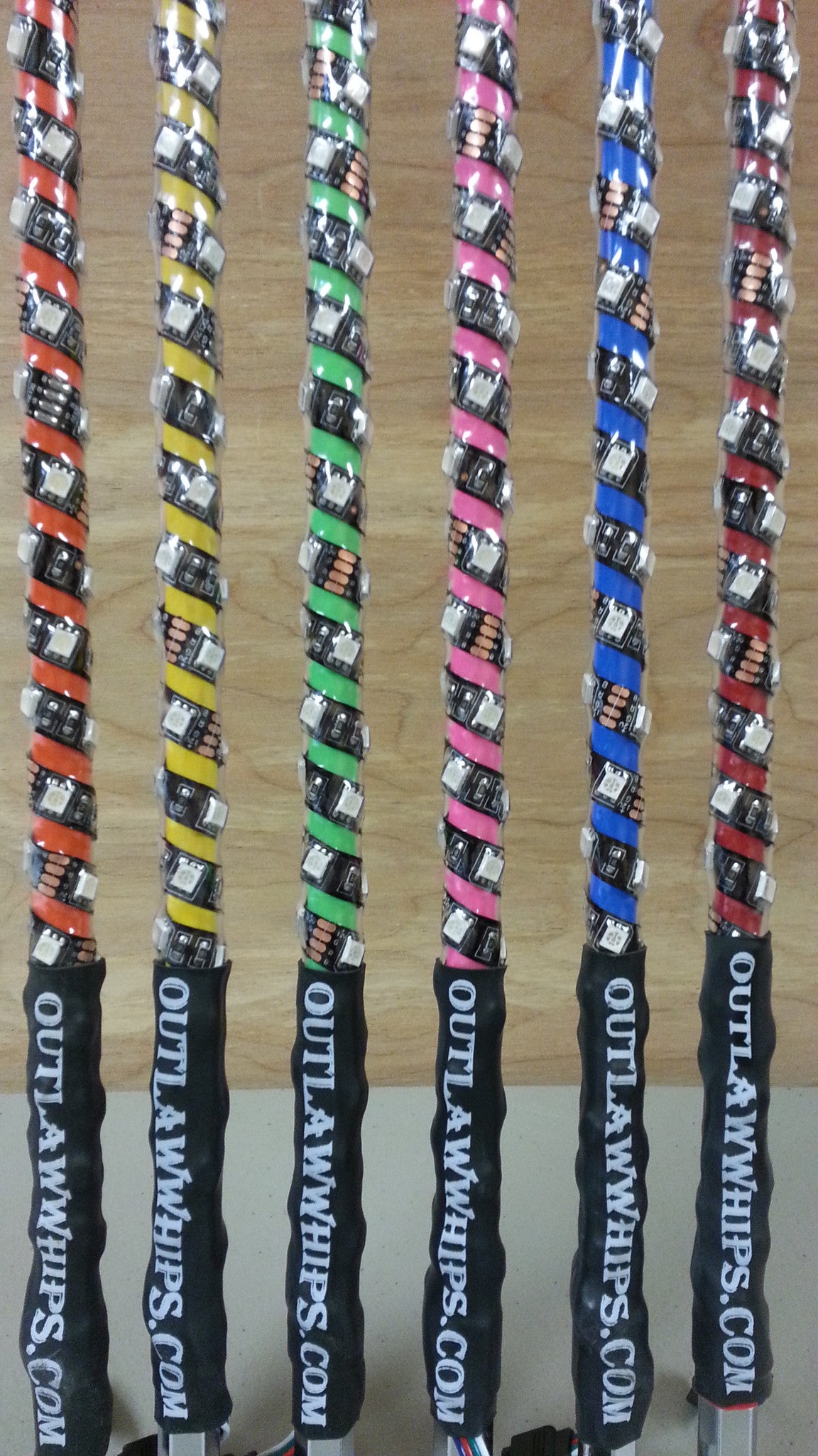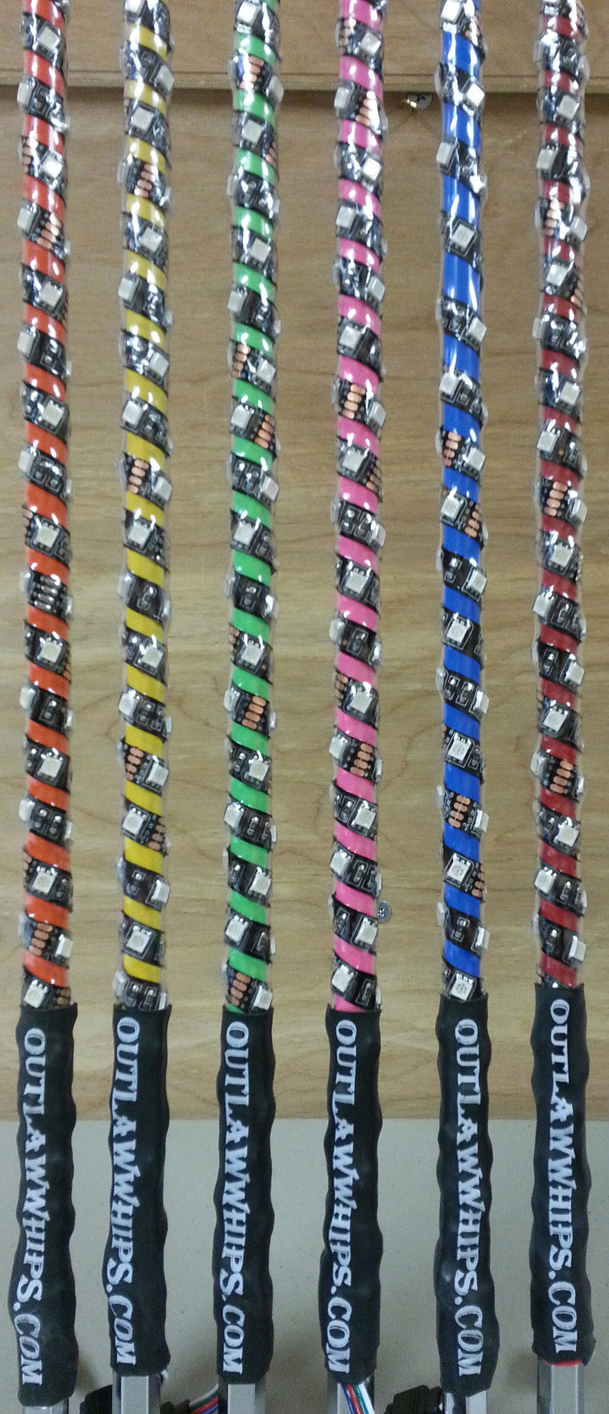 These LED Color Series Whips are the siblings to the BlackJack Series Whips... The under color is unique to any other LED whip in that you get a color option that lets you customize your bike even further!!! We offer the Color Series Whips in under colors of