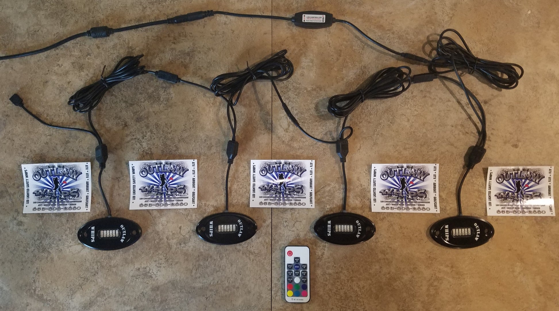 Each Pod Kit includes: 6ft Power Cable, OutlawWhips RGB H2O Waterproof Controller, pin connectors, and OutlawWhips RokPod. The only thing you have to actually wire in is your 12Volt Power Cable.
